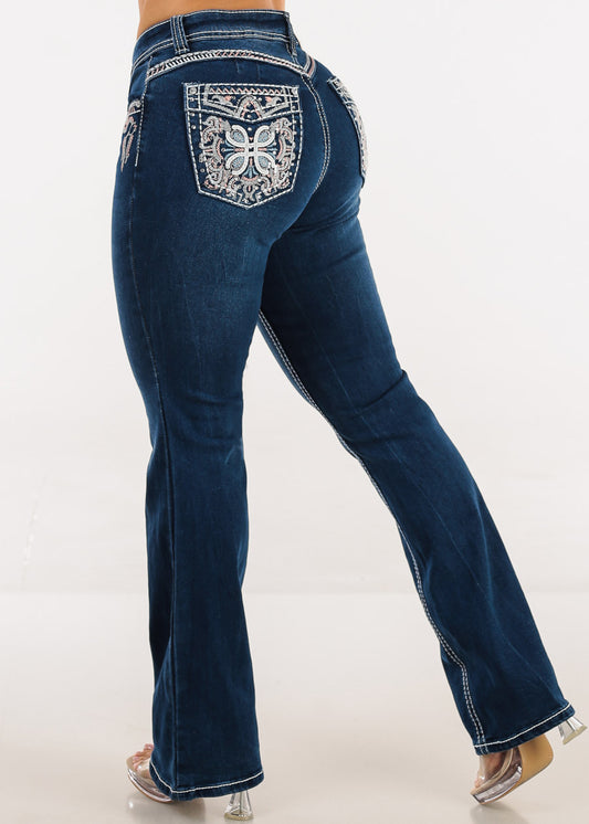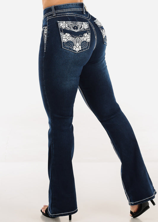 MX JEANS Acid Wash Butt Lifting Mid Rise Bootcut Jeans