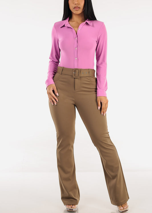 Butt Lift Super High Waist Stretch Bootcut Dress Pants Taupe