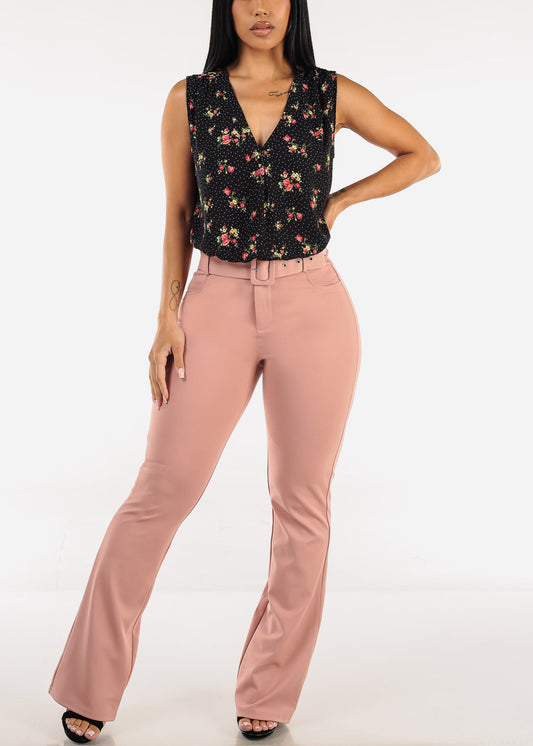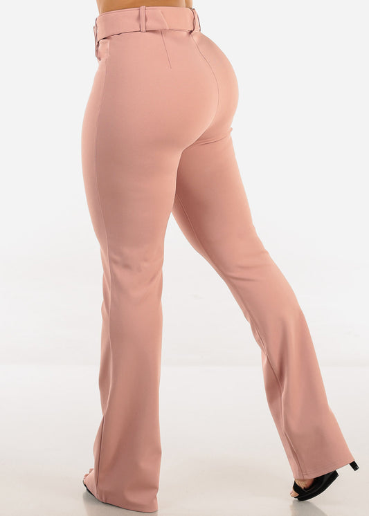 White Butt Lift Stretch Bootcut Dress Pants with Belt