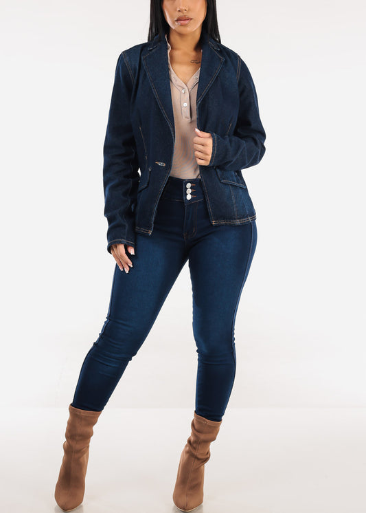 Super High Waist Stretchy Cuffed Denim Shorts Blue