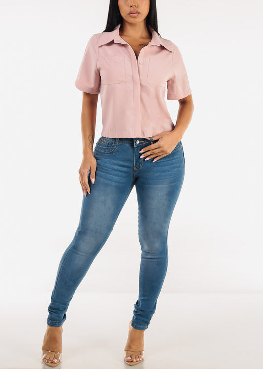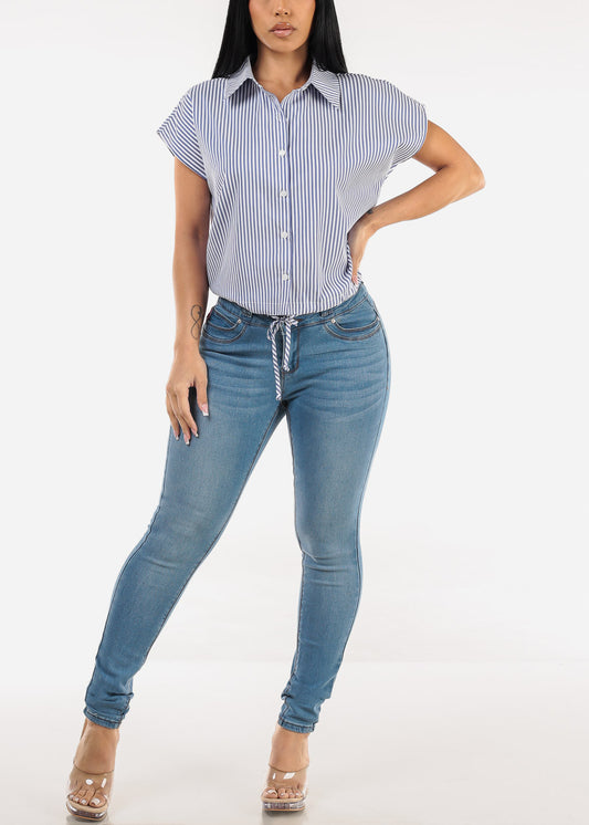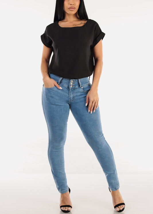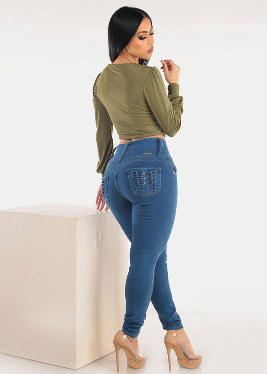 Butt Lift Mid Rise Blue Stretch Skinny Jeans