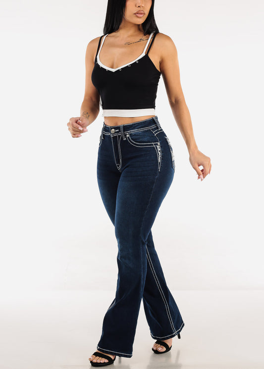 Butt Lift High Rise Stretchy Bootcut Jeans Dark Navy