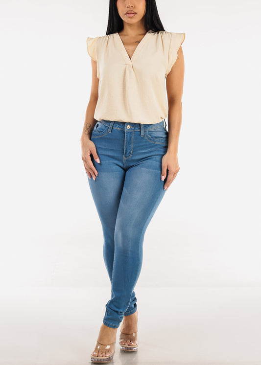 Butt Lift Mid Rise Khaki Stretch Skinny Jeans