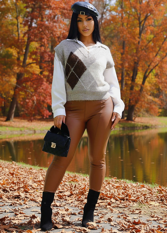 Sleeveless Vneck Knitted Sweater Vest Taupe