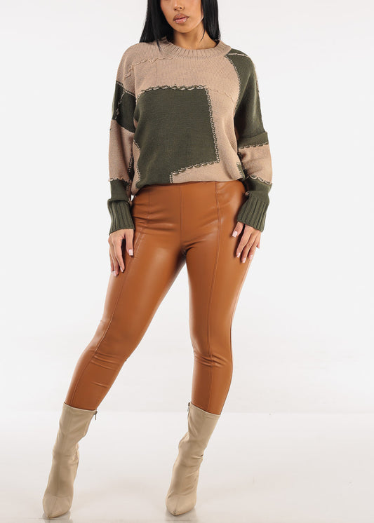 Long Sleeve Turtleneck Stretch Sweater Top Dark Beige