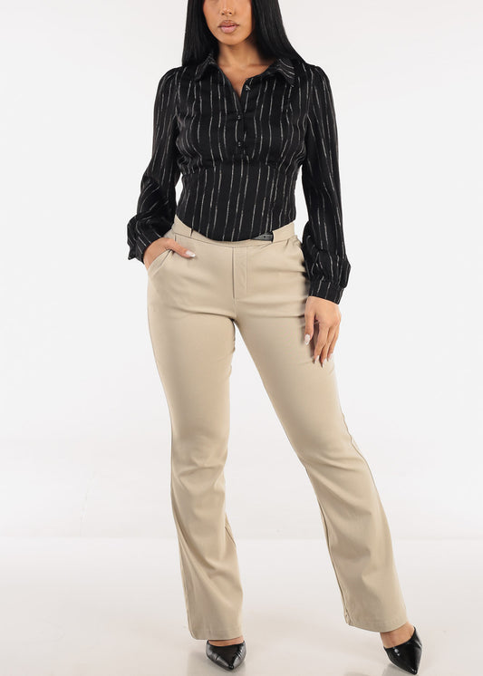 High Waisted Stretch Bootcut Dress Pants Khaki with Belt