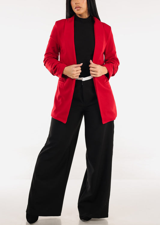 Quarter Sleeve Open Front Formal Blazer Fuchsia