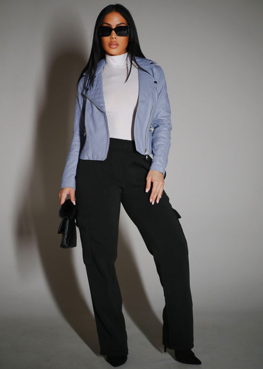 Super High Waist Stretch Wide Leg Cargo Jeans Light Wash