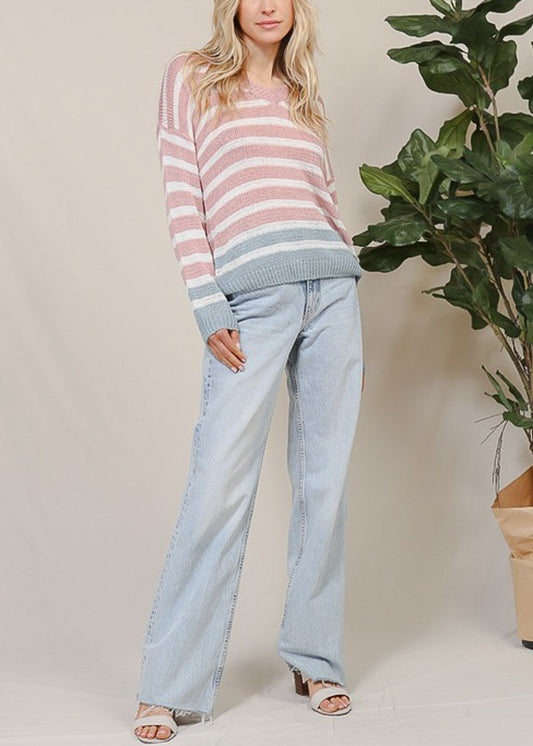 Long Sleeve Vneck Knitted Sweater Heather Grey