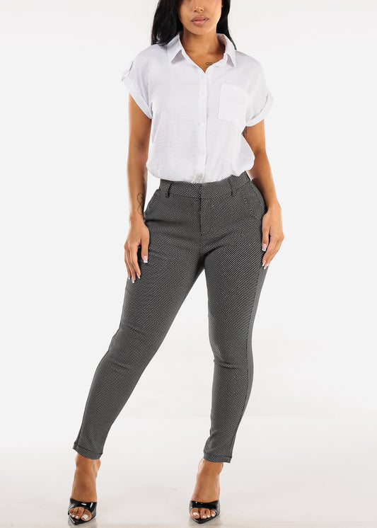 Butt lift Mid Rise Stretch Polka Dot Skinny Pants Black