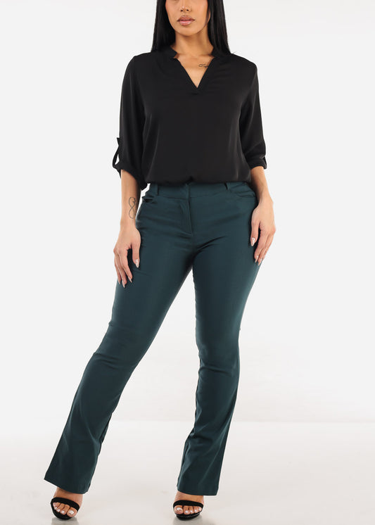 High Waist Stretch Bootcut Dress Pants Dark Green