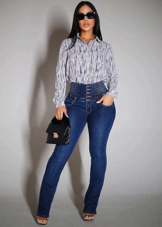 MX JEANS Butt Lift 3 Button Spandex Waist Bootcut Jeans Dark Wash