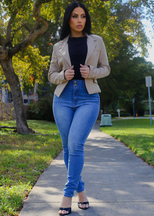 Super High Waist 1 Button Light Wash Skinny Jeans