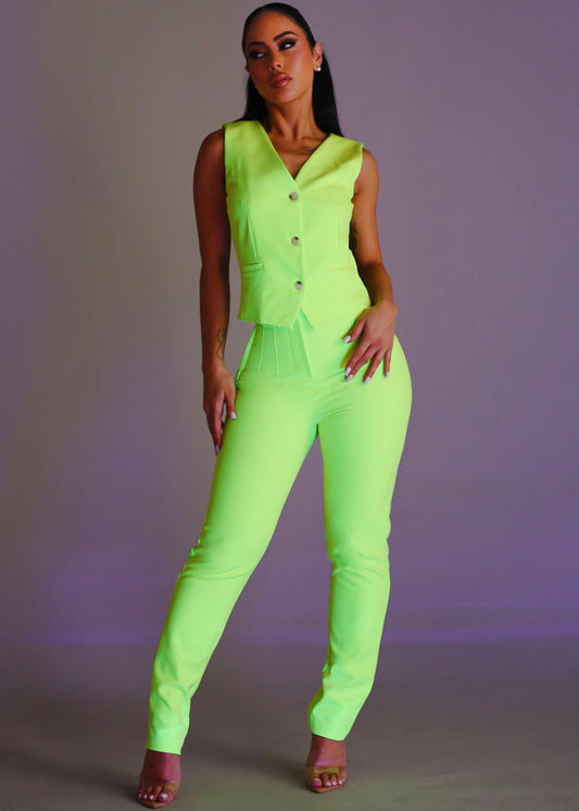 Super High Waist Straight Leg Dressy Pants Neon Lime