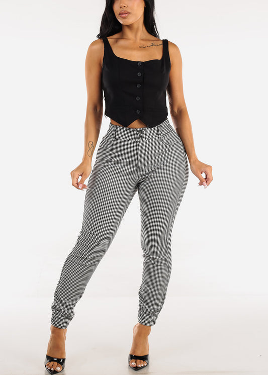 Super High Waist Stretch Plaid Jogger Pants B&W