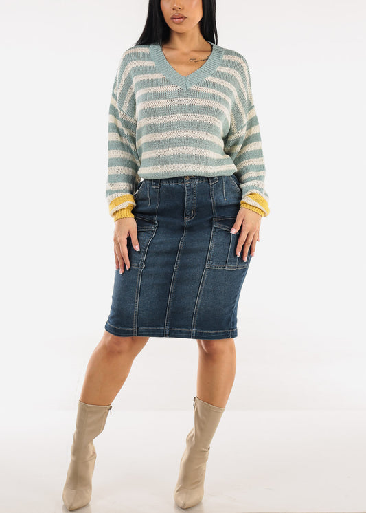 Butt Lift Stretch Cargo Denim Pencil Skirt Med Wash