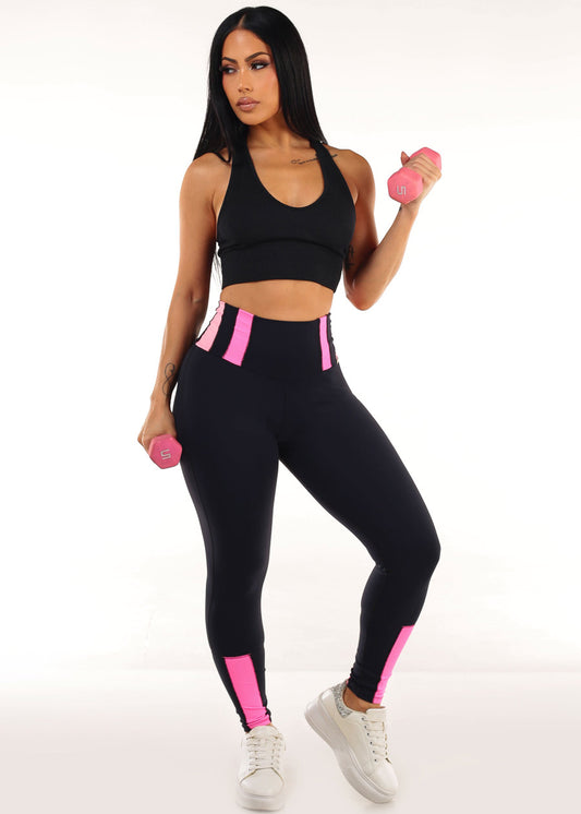 MADE IN BRAZIL Butt Lift Black Scrunch Leggings w Pink Trim