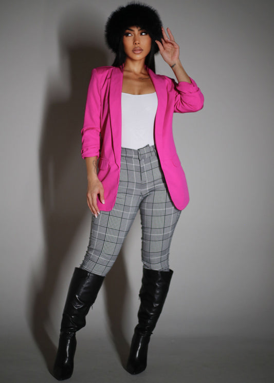 Stretchy Butt lift High Rise Plaid Skinny Pants Black