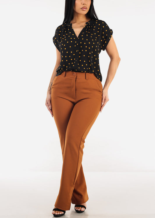High Waisted Stretch Flared Bootcut Dress Pants Black
