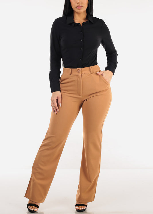 Butt Lift High Waisted Bootcut Dress Pants Beige