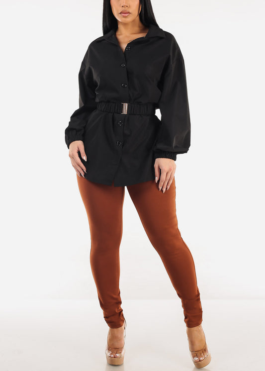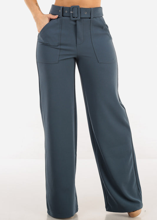 High Waisted Stretch Bootcut Dress Pants Black w Belt