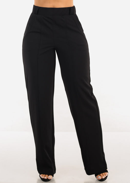 Super High Waist Stretch Wide Leg Dress Pants Black