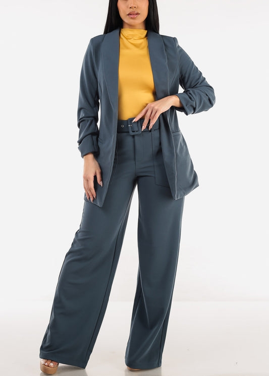 Super High Waist Stretch Wide Leg Dress Pants Grey