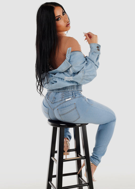 MX JEANS Butt Lifting High Waist Light Blue Skinny Jeans