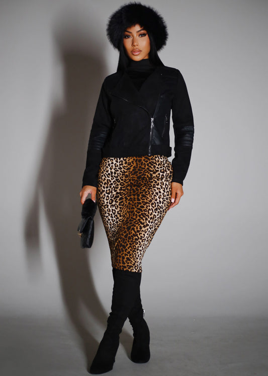 Zip Up Suede Biker Jacket Black