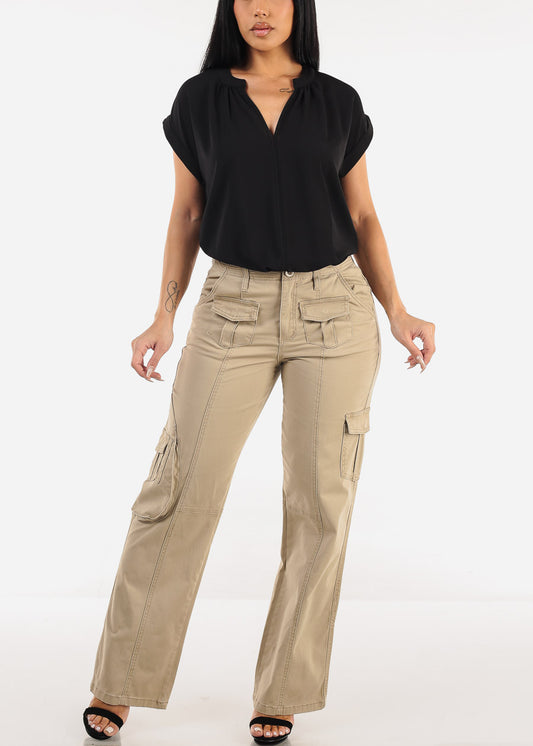 Super High Waist Wide Leg Cargo Pants Dark Khaki