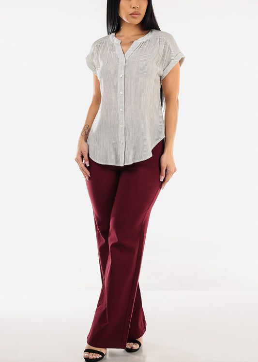 Short Sleeve Vneck High Low Stripe Blouse Ivory