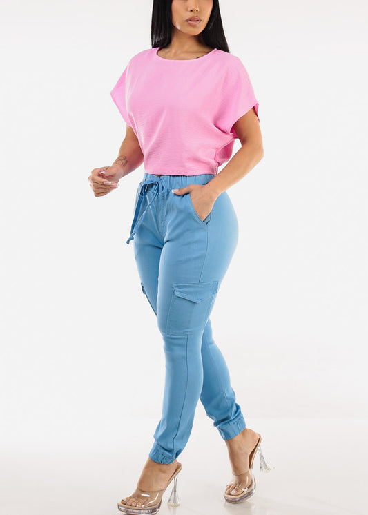 Short Dolman Sleeve Round Neckline Blouse Pink