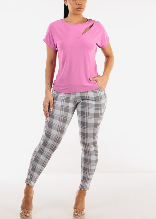 Short Sleeve Round Neck Stretchy Blouse Orchid