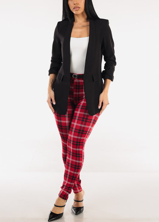 Quarter Sleeve Open Front Blazer Black