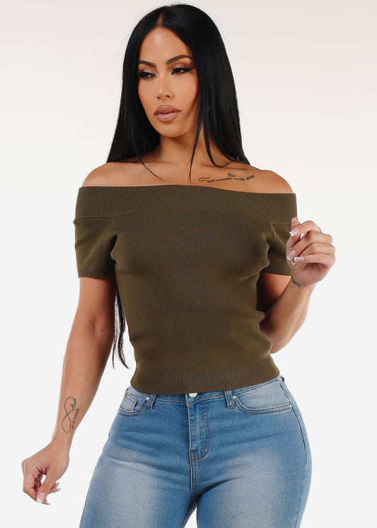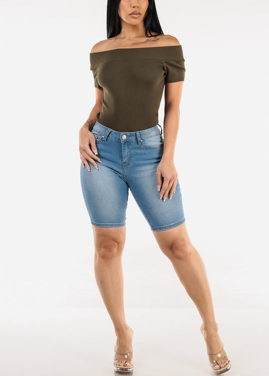 Stretchy Long Sleeve Square Neck Ribbed Top Grey