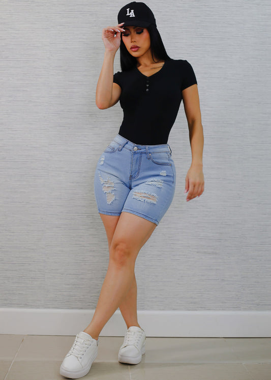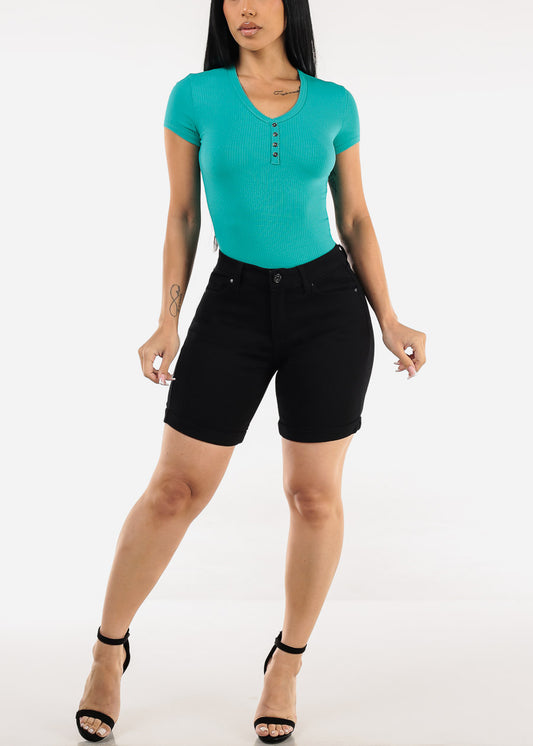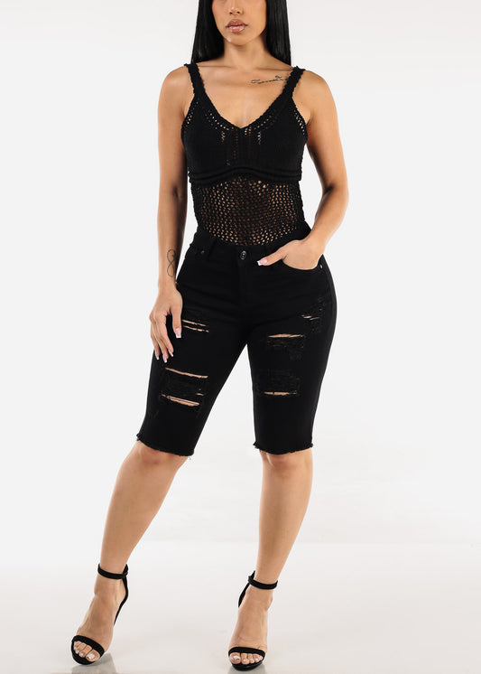 Black Sleeveless Vneck Stretch Thong Bodysuit