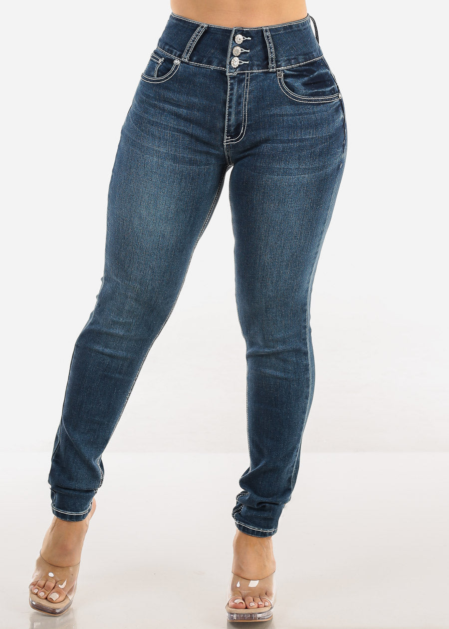 Butt Lift High Waist Skinny Jeans w Back Pocket Design