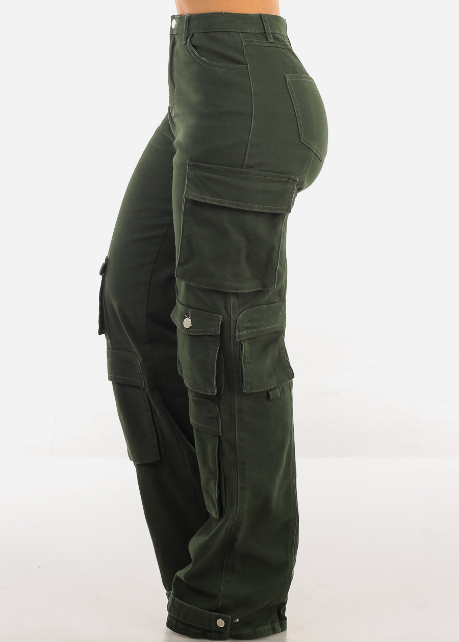 Butt Lift Straight Wide Leg Cargo Jeans Olive