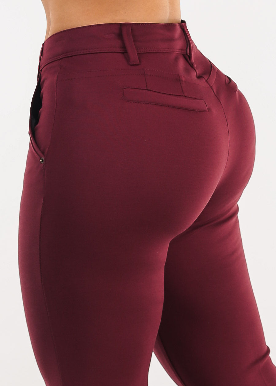Butt Lifting High Waist Bootcut Dress Pants Burgundy
