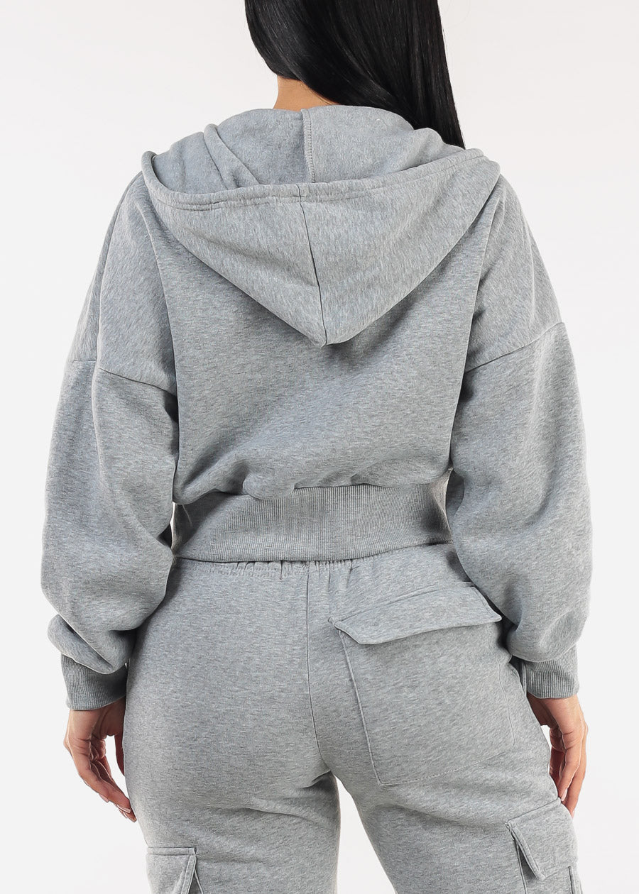 High Waist Relaxed Fit Utility Fleece Sweatpants Grey