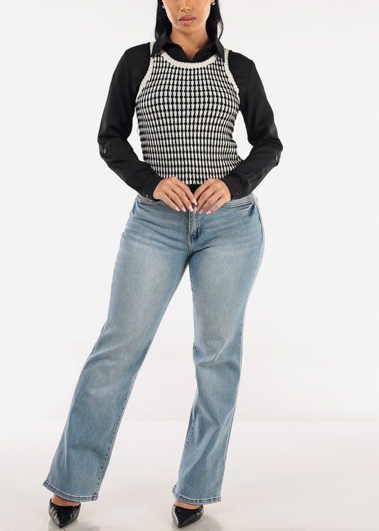 High Waisted Straight Wide Leg Stretch Jeans Light Blue
