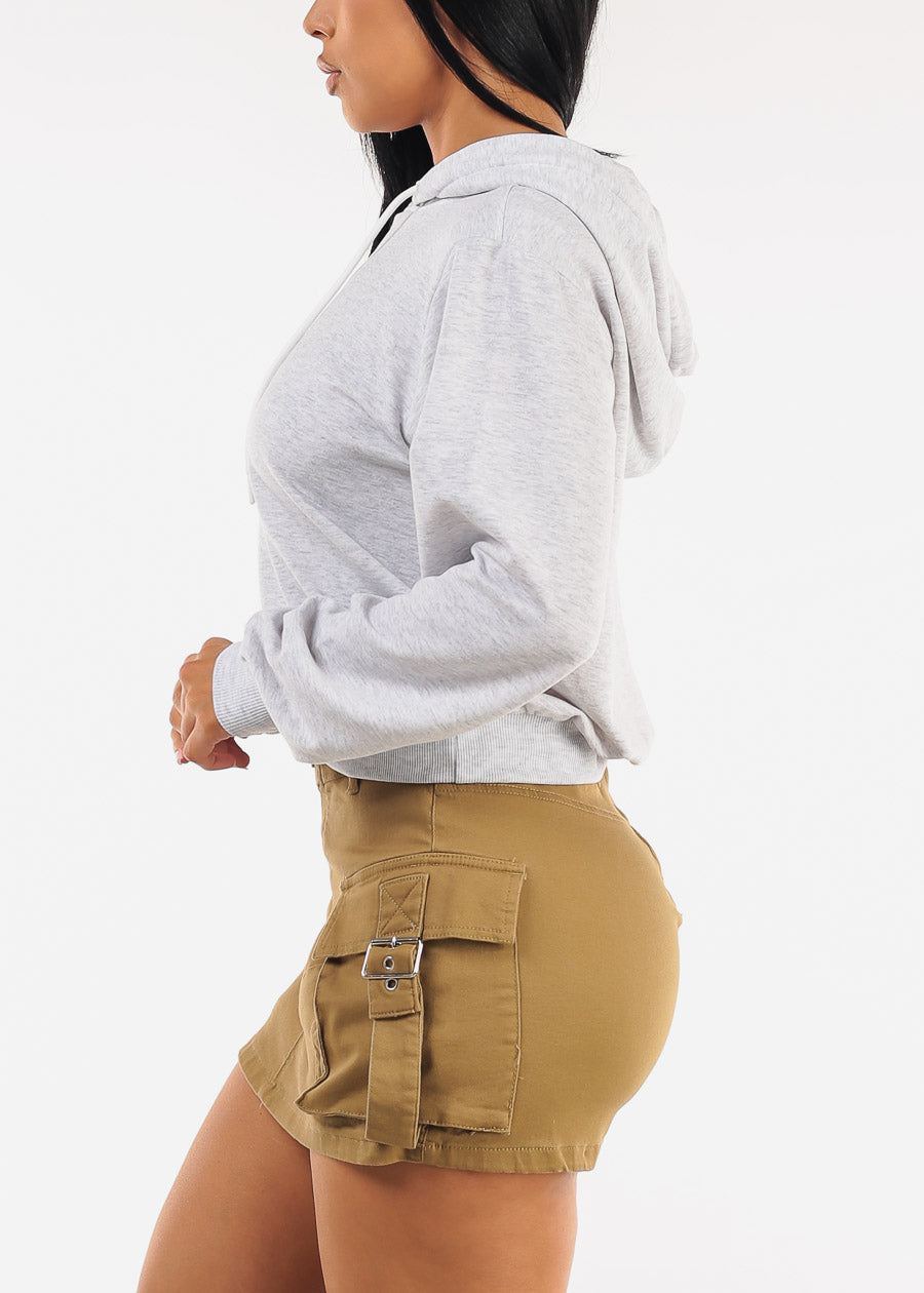 High Waist Stretch Cargo Mini Skort Dark Khaki
