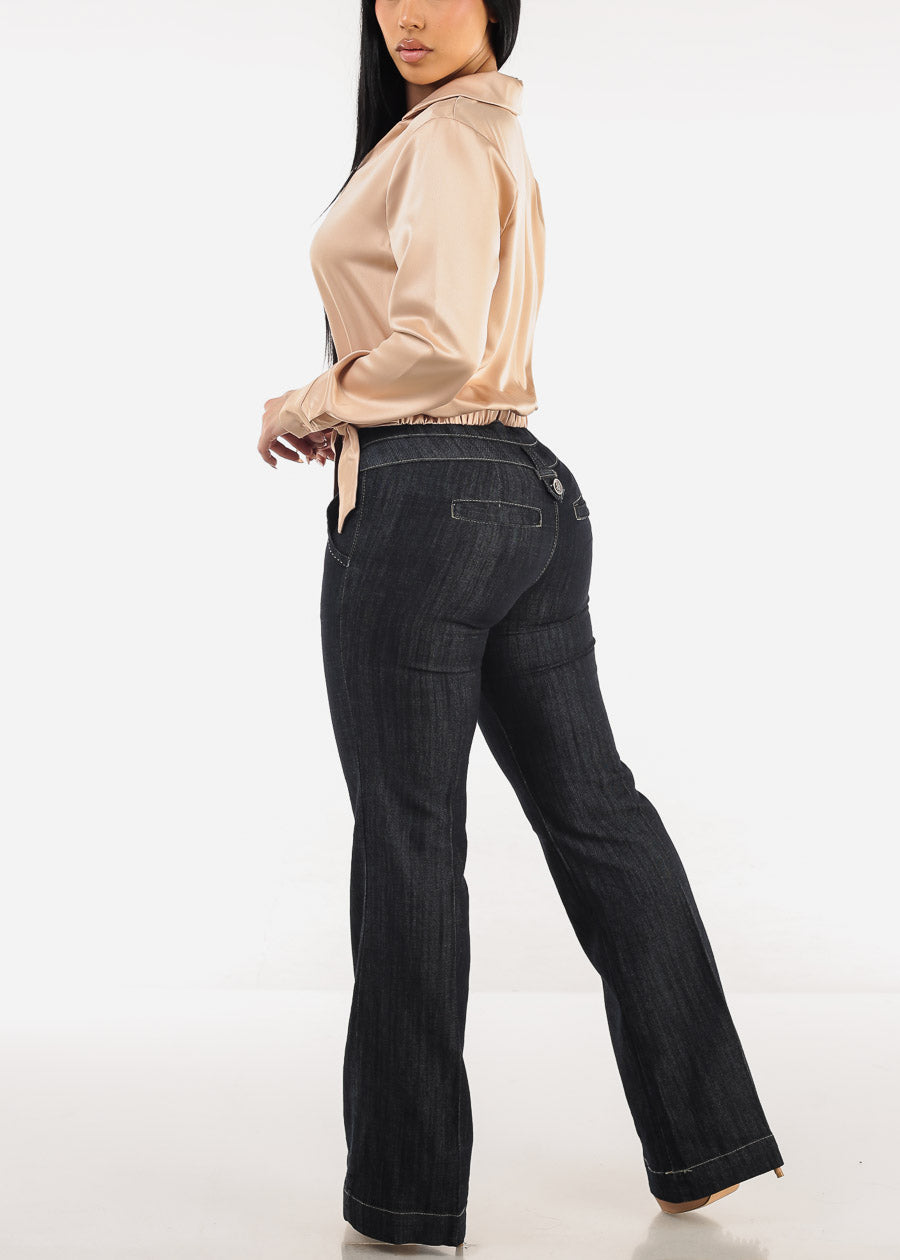 - Bootcut. Zip up 2 button closure . 2 functional front pockets, 2 functional back pockets.