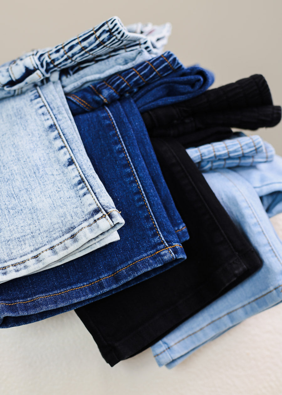 - Butt lifting design. Belt loops. Spandex waist. Denim.