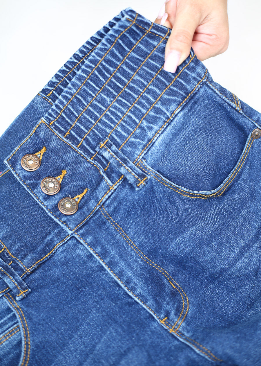 MX JEANS Butt Lift 3 Button Spandex Waist Straight Wide Leg Jeans Dark Blue