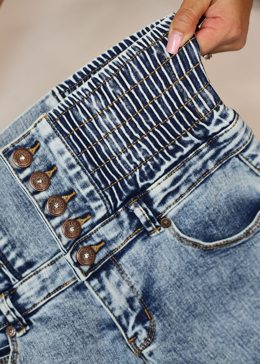 MX JEANS Butt Lift 5 Button Spandex Waist Straight Wide Leg Jeans Acid Wash