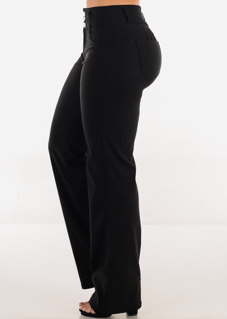MX JEANS Butt Lift Hyper Stretch Straight Wide Leg Pants Black
