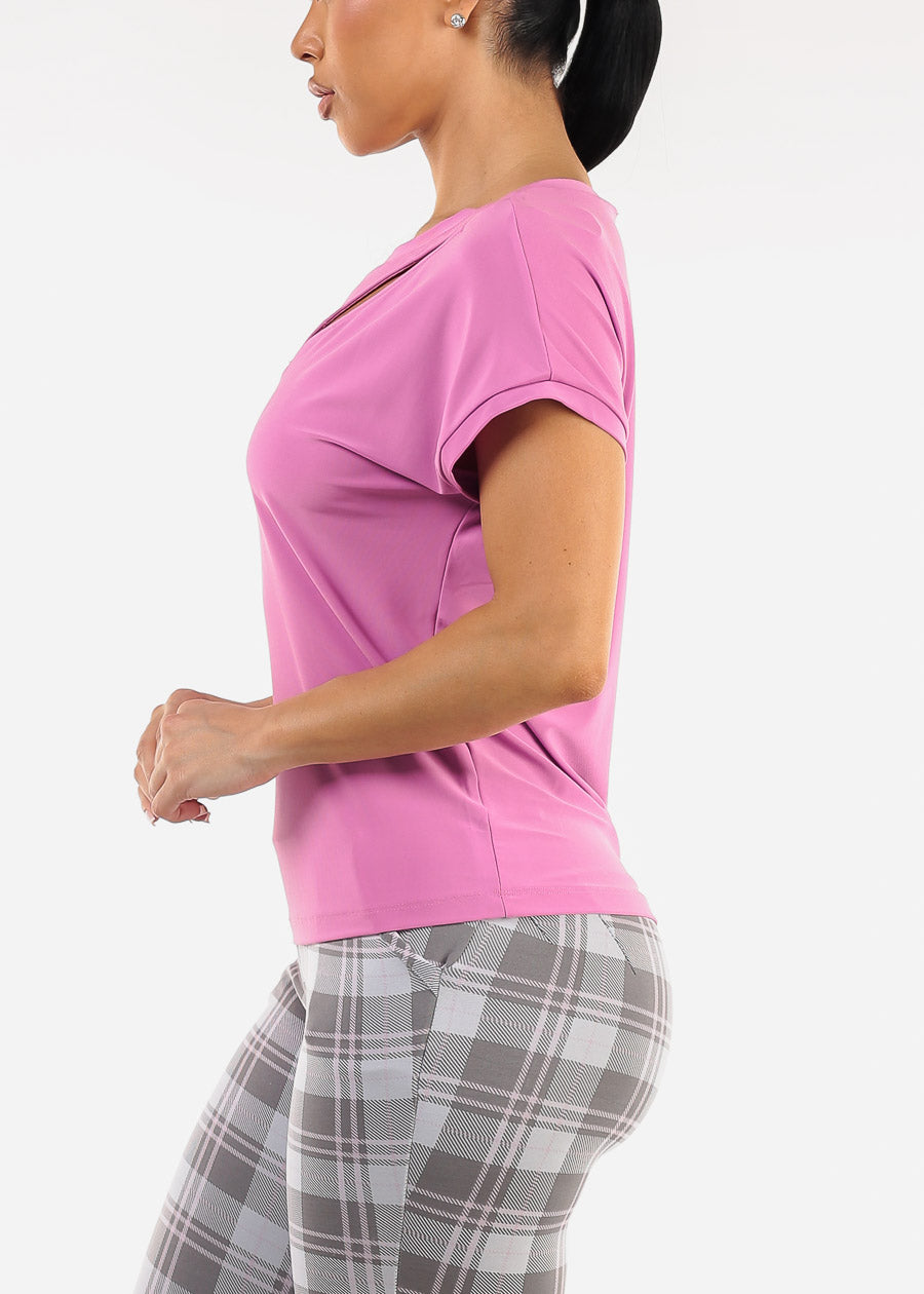 Short Sleeve Round Neck Stretchy Blouse Orchid