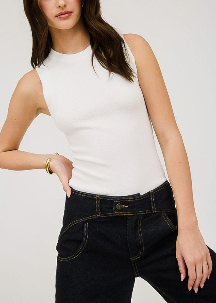Sleeveless Crewneck Stretch Knit Sweater Top White