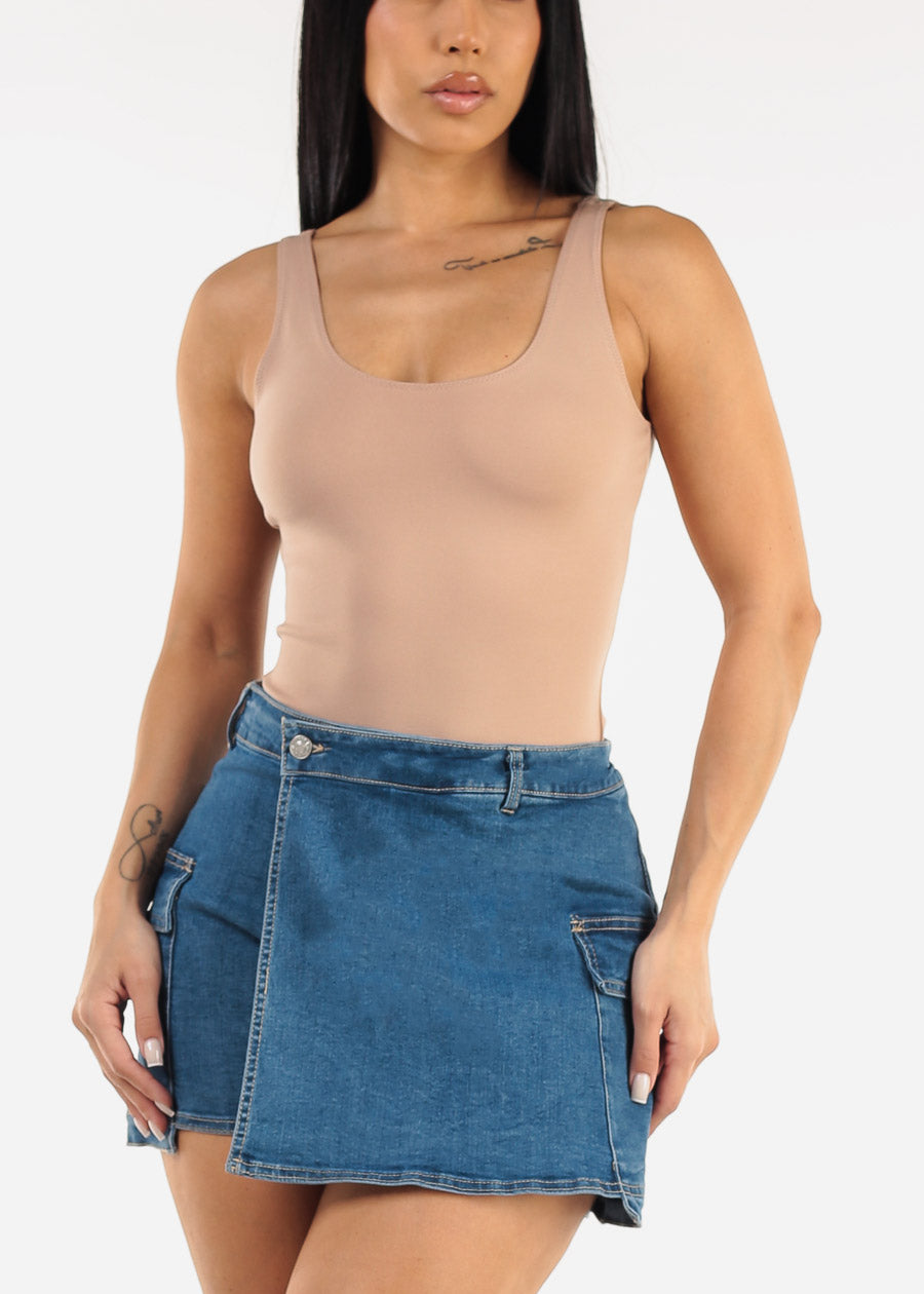 Sleeveless Scoop Neck Thong Bodysuit Nude